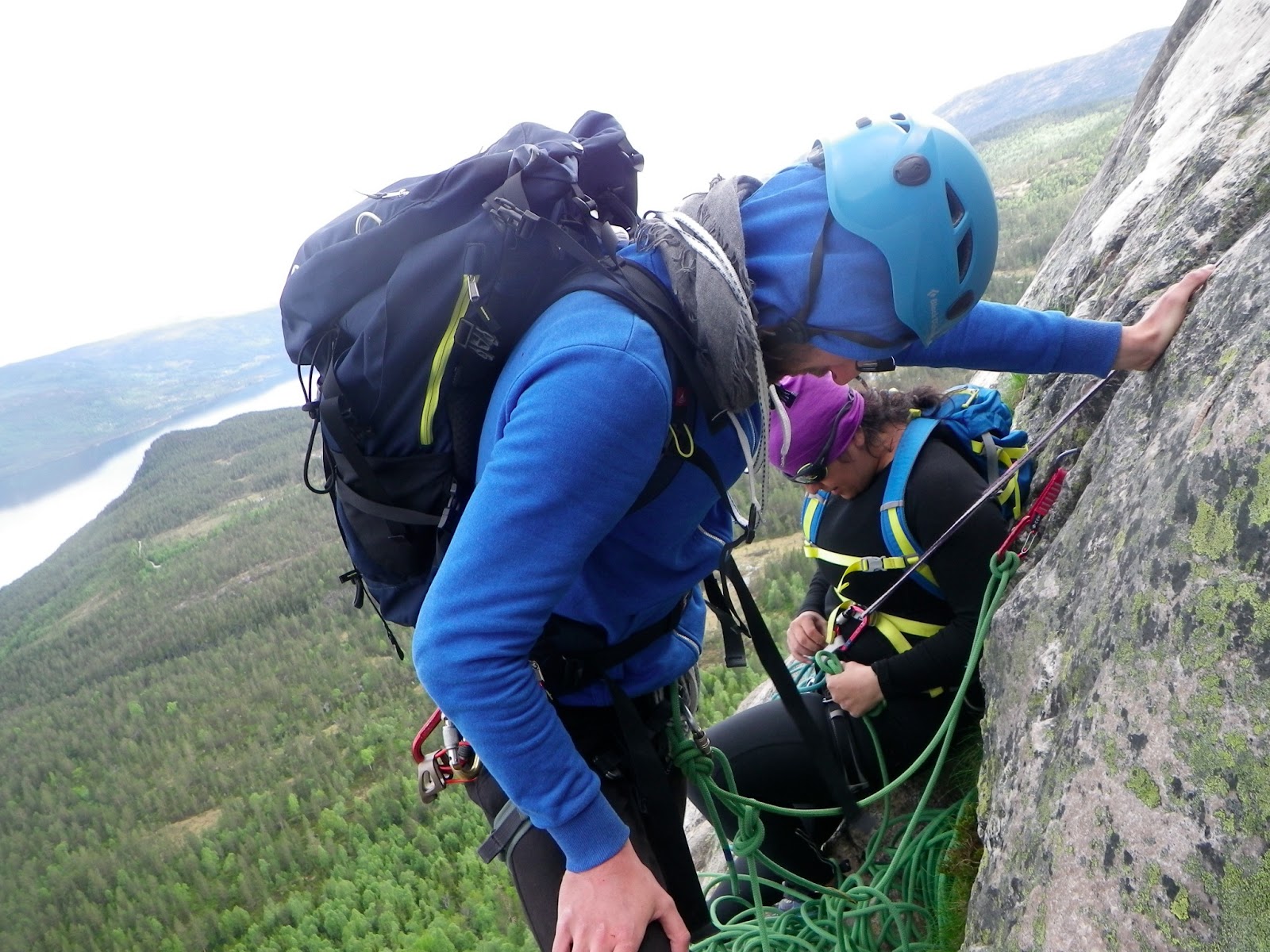 We got up early to avoid queue att Via Lara (which is the most popular route) but it took some time before we got there anyway. This day started out really beautiful. I got up there and started climbing. There was just another couple on the wall so that's good. Golaleh was a bit afraid in the beginning and didn't wanna look down at first. But later on we all enjoyed the wiew since it's gorgeous. I love it when the trees are getting smaller and the wiew is more and more fantastic up there. But the clouds were coming in and at the last two pitches (estimated at 300 metres) so the rain hit us really hard and some thunder and a little hail. But we all got up safe and wet. It just took a little longer than expected. Also the way down took us really long. We brought other shoes but were soaking wet and just walked on in our climbing shoes all the way to the other side of the mountain and then down. When we came to the gravel road then I finally changed and it was so good and so dark. We arrived at the tent 01.40 am. All I could think of was to get dry clothes, because now we all were so wet and cold. We brought sandwiches for lunch but I guess we were so focused during the climb that noone thought about it. We only had water and a piece of chocolate on the route. I changed to dry clothes and crawled down in my sleepingbag to get warm. We made som tea and then fast asleep...
